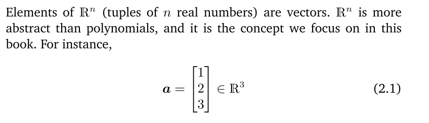我们更关心的其实是n维实数空间上的vector,比几何意义上的vector更抽象一点: