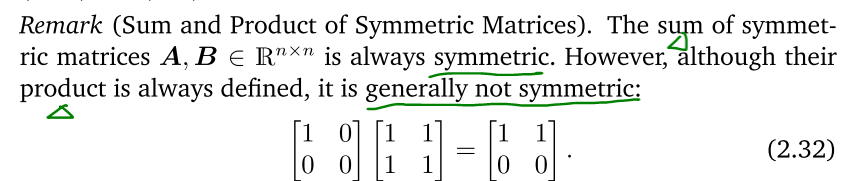 对称矩阵的sum一定是对称的,但product不一定对称。
