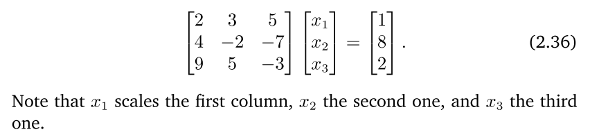 \(Ax\) is a (linear) combination of the columns of \(A\).