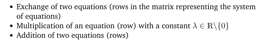 elementary transformations在不改变solution的同时,可以对方程组进行简化。
