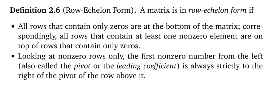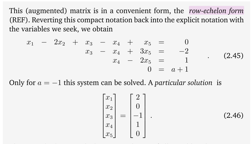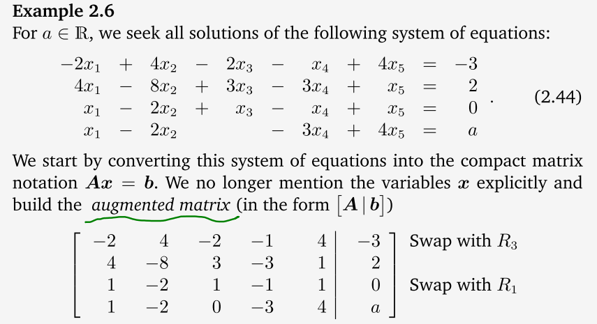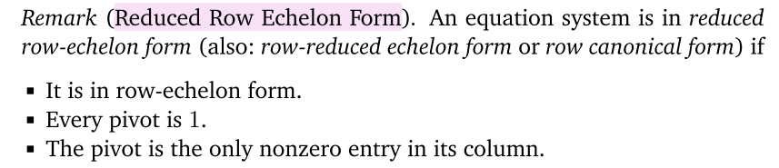 Gaussian elimination就是一个将augmented matrix转化为reduced row-echelon form的算法。