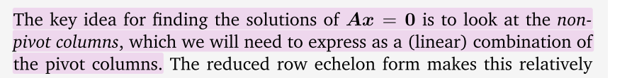此时,pivot -1所在的columns就是Ax=0的solution。