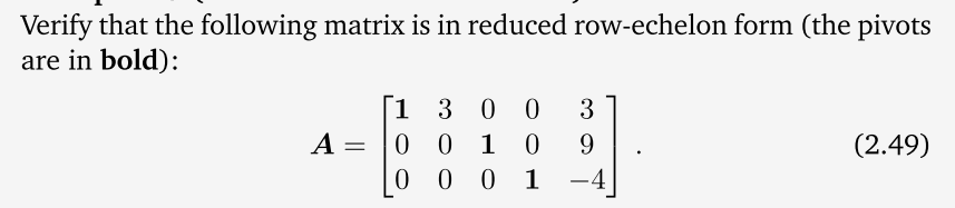 - 阶梯状矩阵,每一行从左起的第一个非0元素必须严格在上一行第一个非0元素的右边。