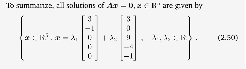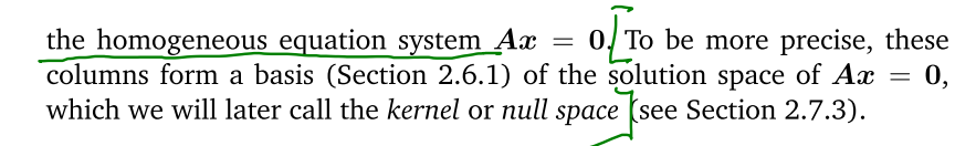 实际上这些column组成了Ax=0的解空间的basis,称为kernel或者null space。
