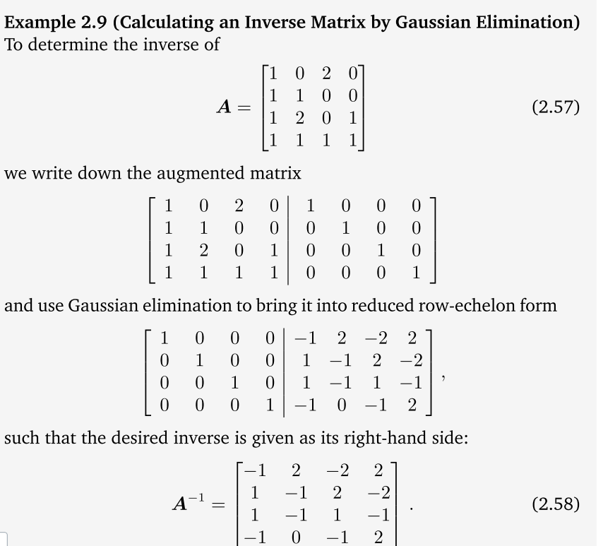 这样一来我们只需要将\([A|I_n]\)视作augmented matrix,然后将其转换为reduced row-echelon form。