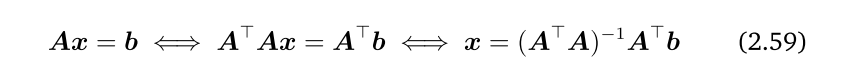 在某些特殊情况下,如果我们能找到\(A^{-1}\),就能直接找到\(Ax=b\)的解,\(x=A^{-1}b\)。 However, this is only possible if A is a square matrix and invertible, which is often not the case.