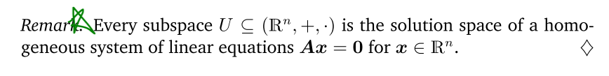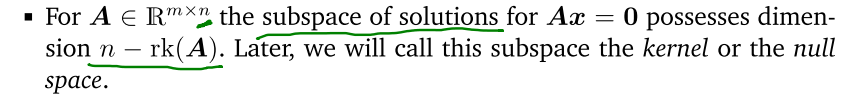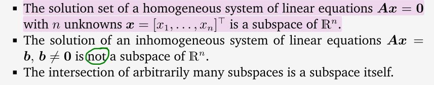 homogeneous equation systems Ax = 0对应的是vector subspace。