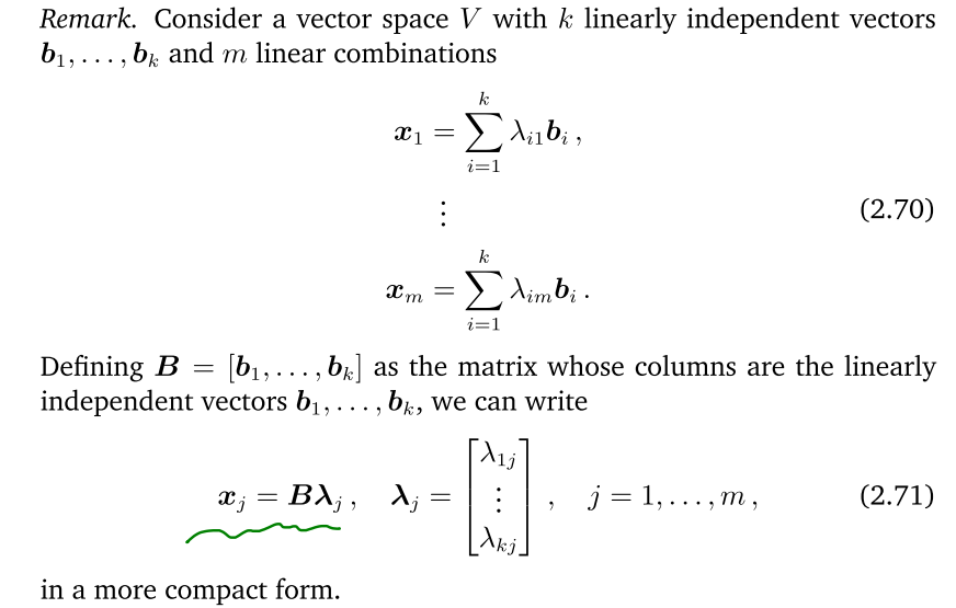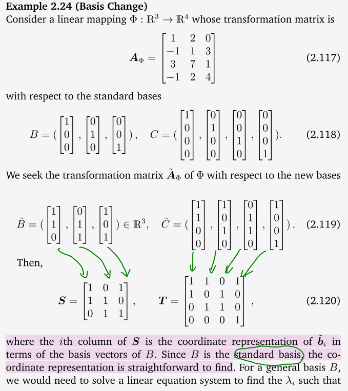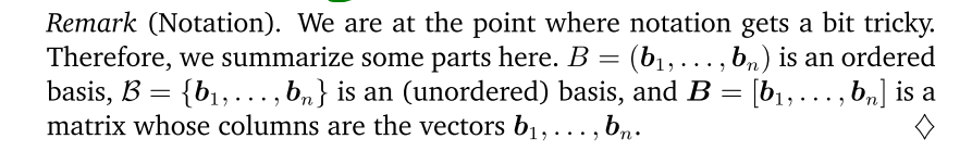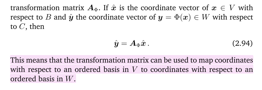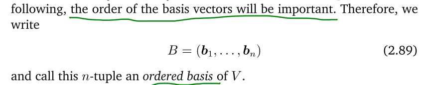 因为V中的任意元素x都可以被basis唯一表示,而B又是basis的有序tuple,则对于每个x我们都可以用一系列系数组成的vector表示。 定义这个vector就是the coordinate vector/coordinate representation of x with respect to the ordered basis B.