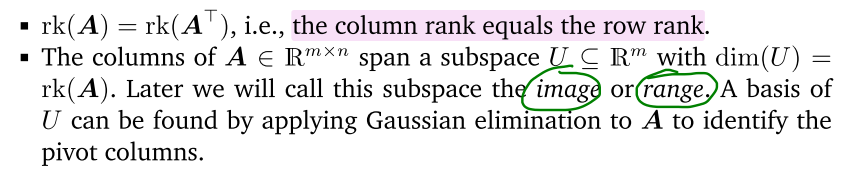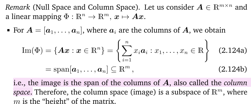 假设W是V经过线性变换A得到的,那么这个映射的image就是A的columns的span,称为column space。