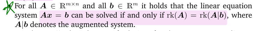 Ax=b有解当且仅当\(rk(A)=rk(A|b)\).