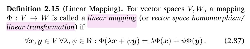 假设有一个线性映射\(\Phi:V\to W\),V和W为向量空间。