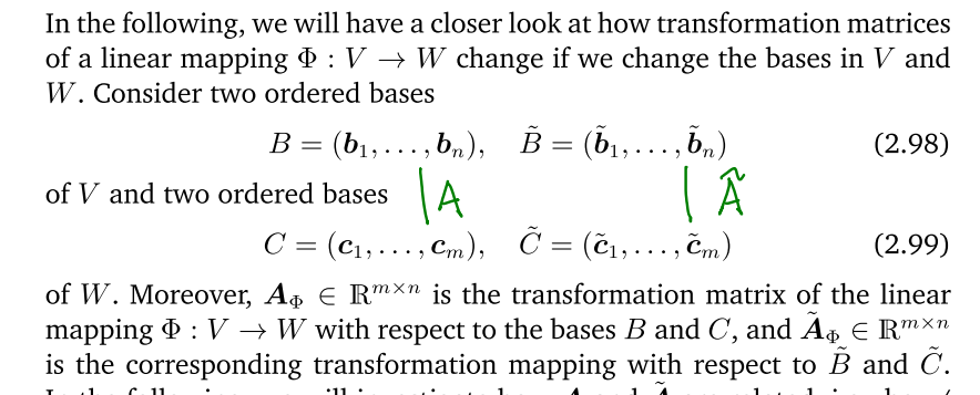 linear transformation前后使用相同的basis,而不是两组不同的basis(B和C)。