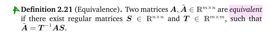 上面的例子中的整个过程,其实就是在讲\(A\)和\(\tilde{A}\)其实是同一个线性变换。因此将其称之为equivalent。