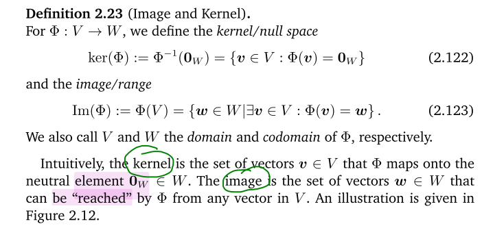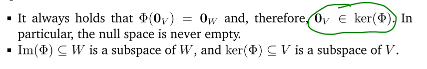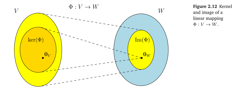 \(ker(\Phi)\)是V中被映射到W的零元的向量的集合。