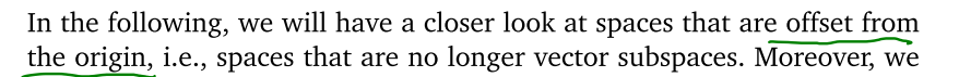接下来来讨论一些不经过origin的空间。因为不包含零元,这些空间不再是向量空间。