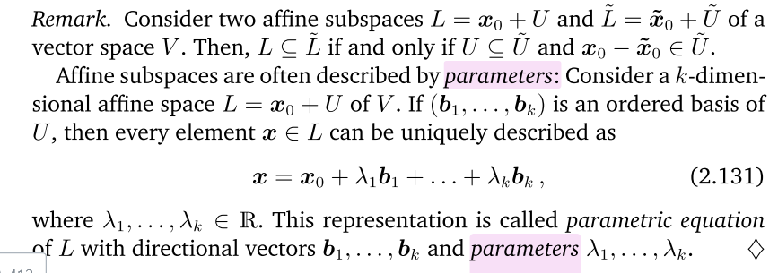 这种表示称为parametric equation of L,所用到的系数称为parameters.