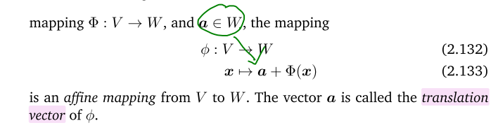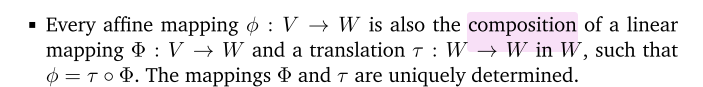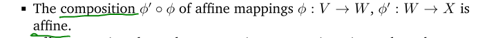 affine mapping可以看作是线性映射\(V\to W\)和translation \(W\to W\)的组合。