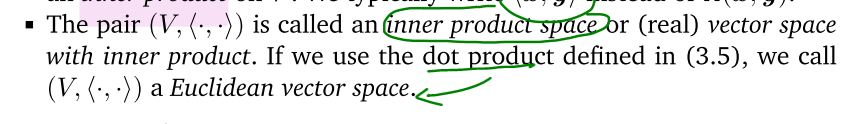 当使用dot product作为inner product时,称V为Euclidean vector space。
