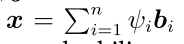 现有V中的两个向量x和y,则可以用B的线性组合表示这两个向量。