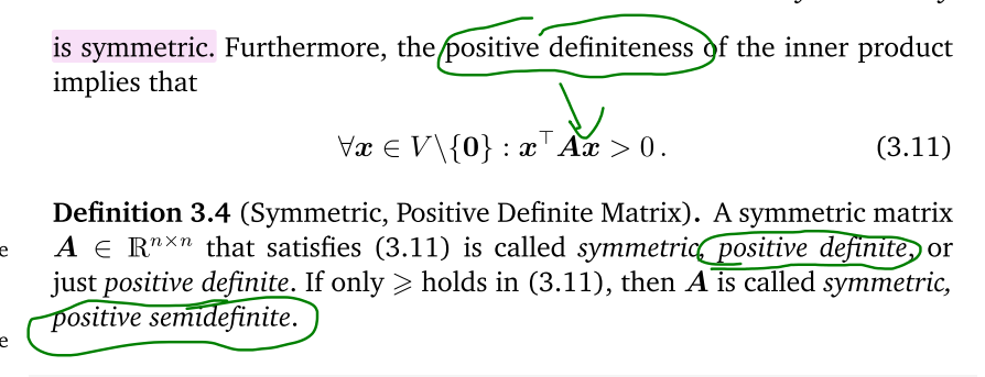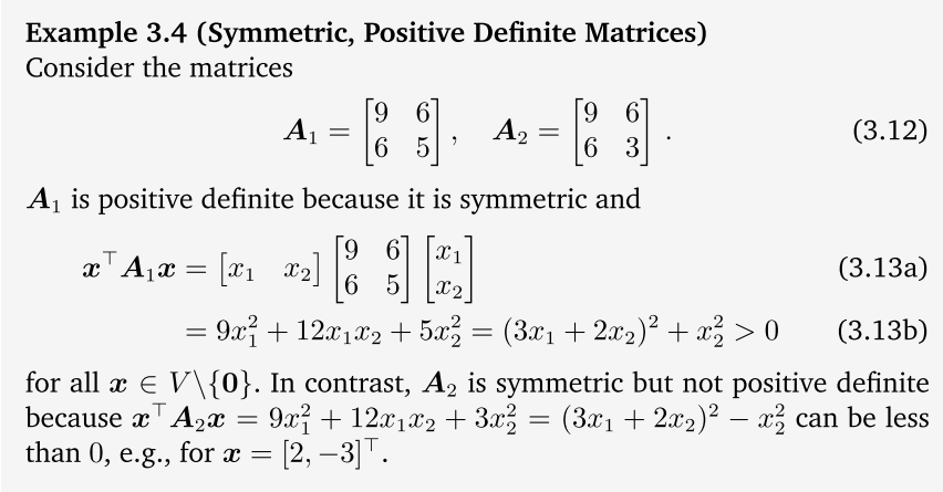 机器学习中,Symmetric, positive definite matrices很重要,而它们是通过inner product来定义的。