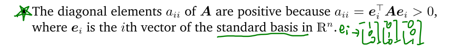 因为令x为standard basis时,\(x^TAx>0\)其实就约束着A的对角线上的元素>0.