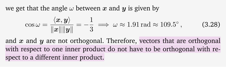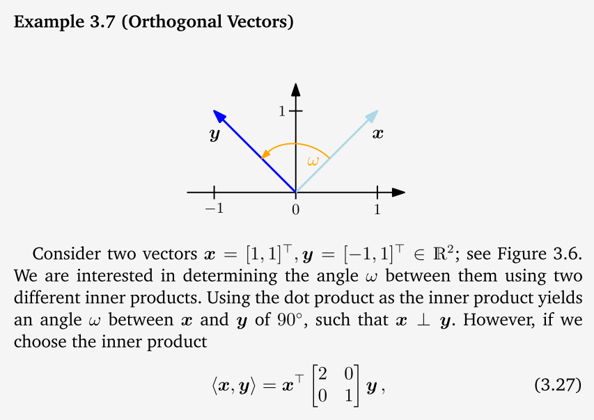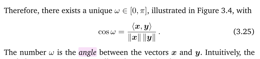 inner products also capture the geometry of a vector space by defining the angle ω between two vectors.