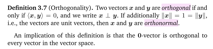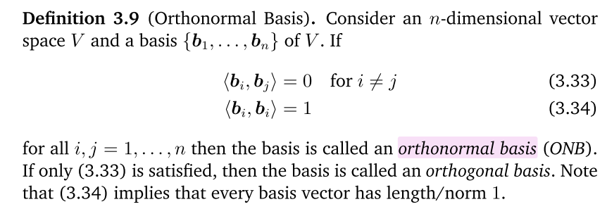 之前我们提到n维向量空间需要n个线性独立的向量(basis), 现在我们增加两个约束, basis正交,basis为单位向量(也就是说是orthonormal basis),看看能得出什么性质。