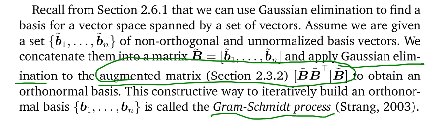 我们可以通过高斯消元法得到一个span的orthonormal basis,