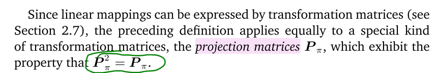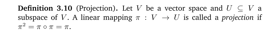 有点难理解,如果对V进行两次变换的结果,和进行一个变换的结果相同,则这个变换称为投影。