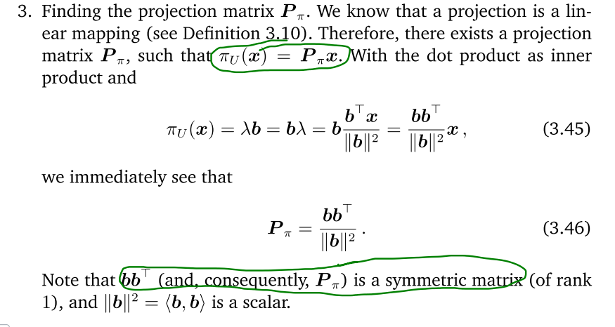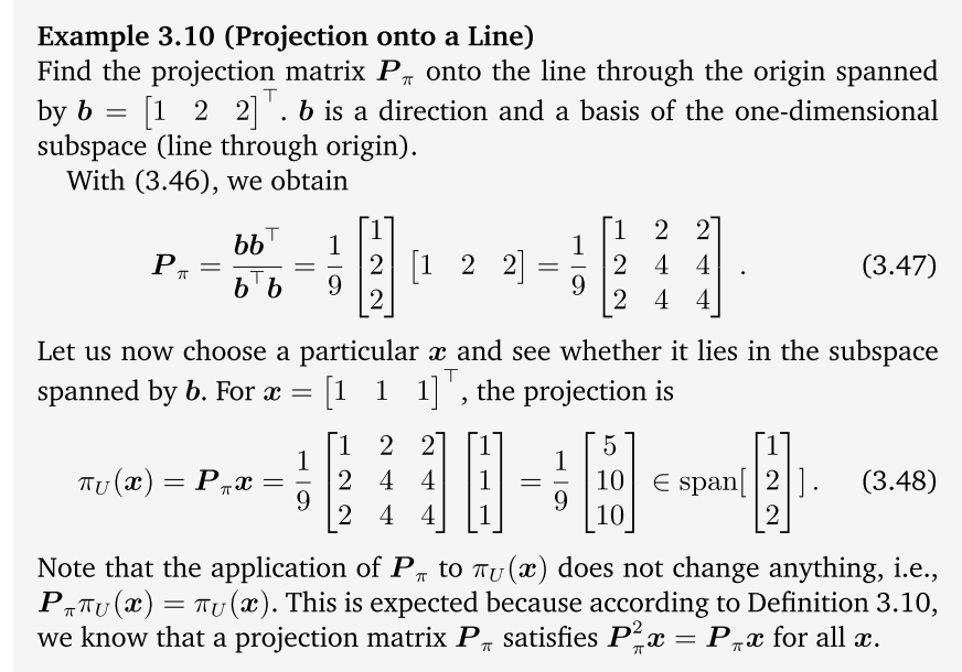 \(P_\pi\)可以将任意向量投影到b所张成的一维子空间(直线)上。