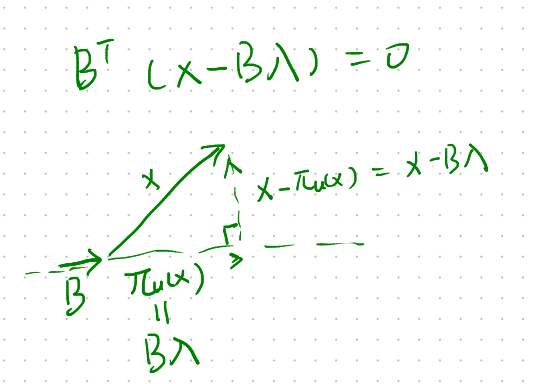 这样一来就可以推出\(\pi_U(x)-x\)需要与B正交。