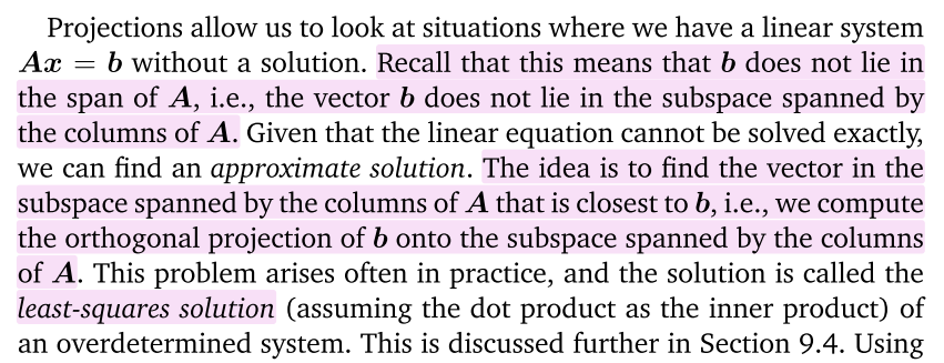 下面我们讨论将inner product spaces投影到subspace中。 其中inner product我们默认全部使用dot product。