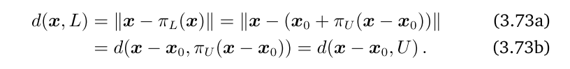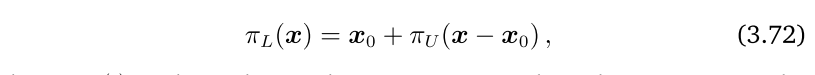 于是我们将其转化为把\(x-x_0\)投影到\(L-x_0=U\)的任务,这样一来就成了投影到向量空间的任务。投影结束之后,再加上\(x_0\)将结果翻译回L。