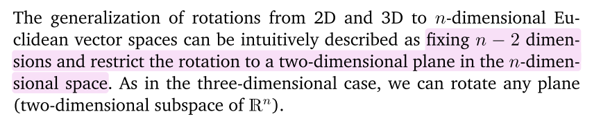 三维空间中的旋转:固定住一个轴不动,将垂直于这个固定轴的平面进行旋转。