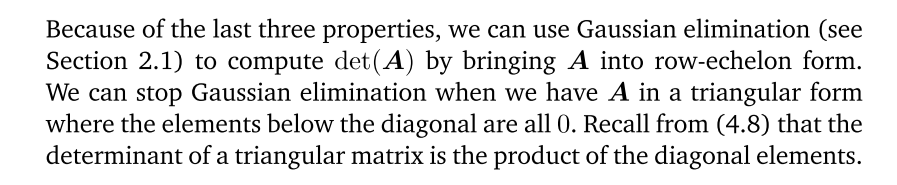 由于上面最后三条性质,我们也可以用高斯消元法求determinant。