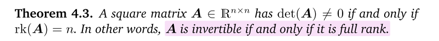 \(det(A)\neq 0\iff rk(A)=n \iff A\,is \,invertible\).