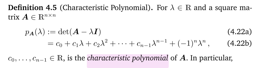 我们不需要记住那一长串,只需要记住\(p_A(\lambda)=det(A-\lambda I)\).