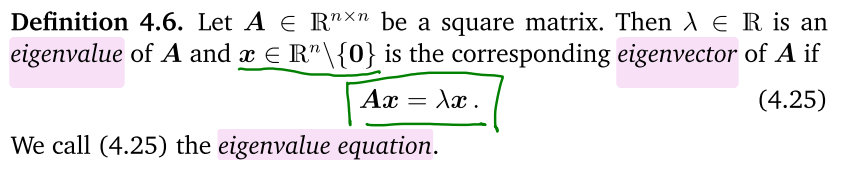 观察\(Ax=\lambda x\),在线性变换之后,x并没有被旋转,而是和原来的x成collinear关系。