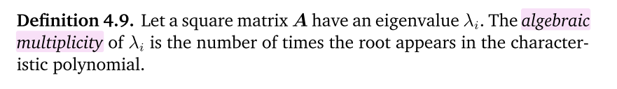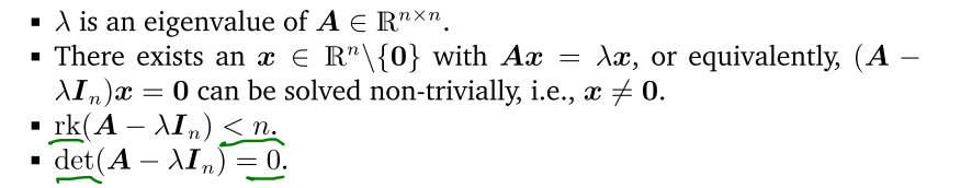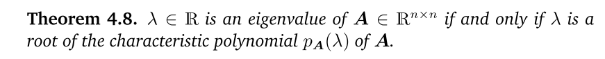 \(\lambda\)是eigenvalue<=>\(\lambda\)是characteristic polynomial的一个root。(不知道有啥用)
