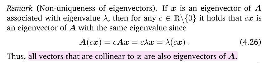 假如x时A的eigenvector,则与x collinear的向量都是A的eigenvector。
