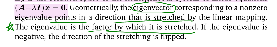 说明eigenvector指向的这个方向是被线性变换“stretch”了的,而“stretch”的程度则由eigenvalue来描述。