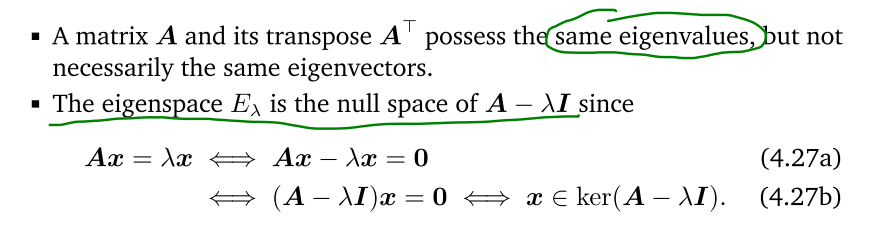 - transpose之后eigenvalue不变,但eigenvector可能改变。