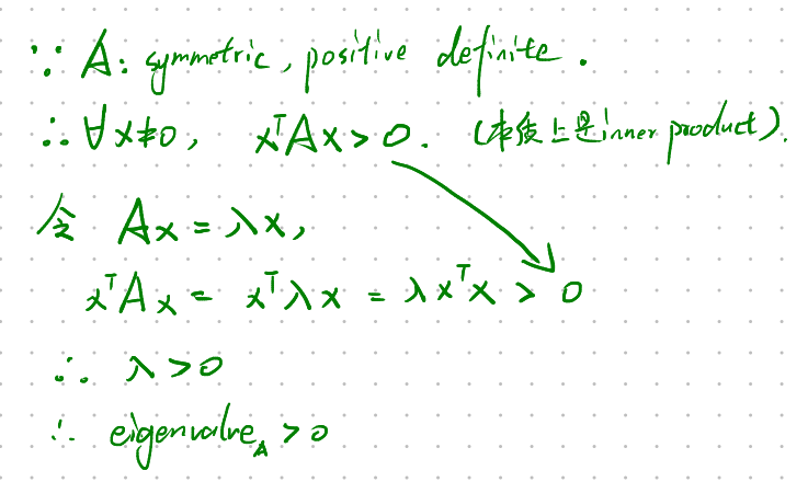 - Symmetric, positive definite matrices的eigenvalue一定大于0