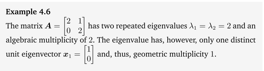 An eigenvalue’s geometric multiplicity cannot exceed its algebraic multiplicity, but it may be lower.