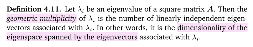 也就是说geometric multiplicity就是这个eigenvalue对应的eigenspace的dimensionality。