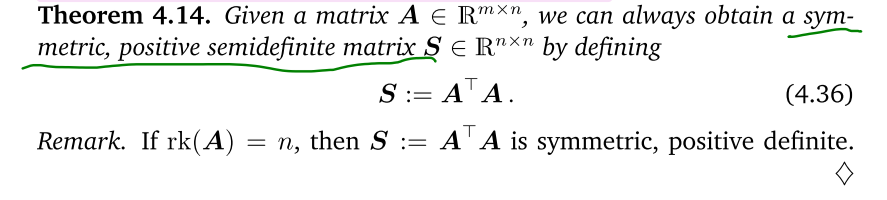 任意矩阵的\(A^TA\)一定是symmetric, positive semidefinite的。