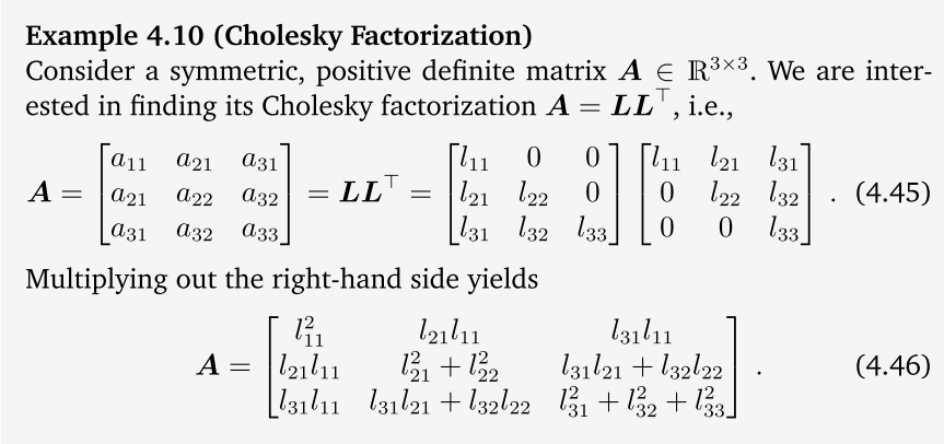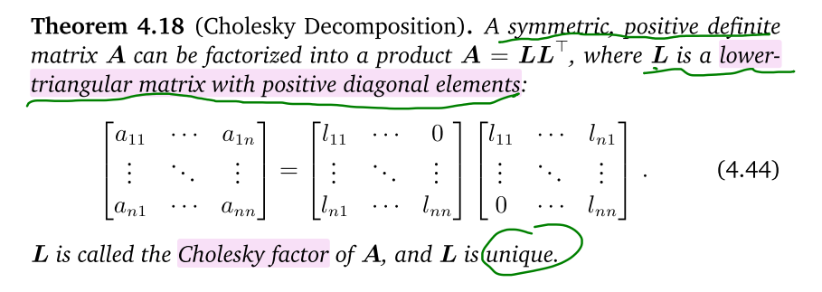 - the covariance matrix of a multivariate Gaussian variable (see Section 6.5) is symmetric, positive definite. The Cholesky factorization of this covariance matrix allows us to generate samples from a Gaussian distribution