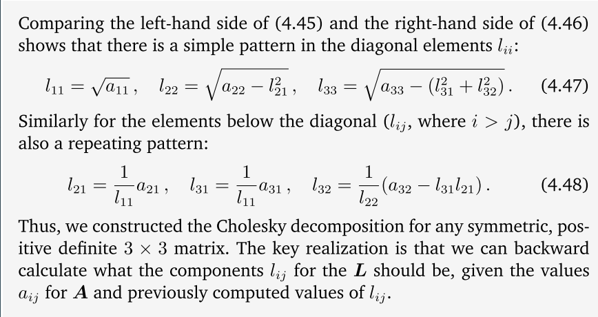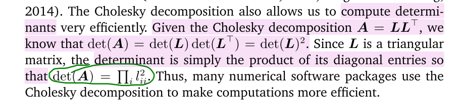 - The Cholesky decomposition also allows us to compute determinants very efficiently.