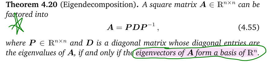 这里我们要求P is invertible,也就是P is full rank,也就是说这些eigenvectors \(p_i\)线性独立,是一组basis。