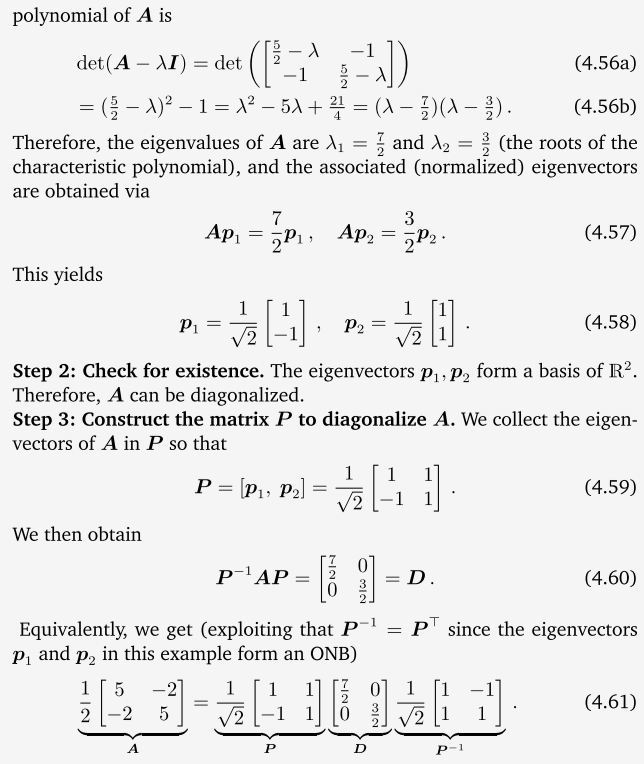 矩阵的Diagonalization是basis change we discussed in Section 2.7.2 and eigenvalues from Section 4.2的综合应用。